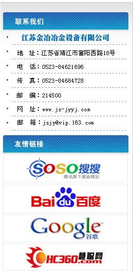 Copyright © All rights reserved. 江蘇金冶冶金設備有限公司 版權所有   蘇ICP備10064511號